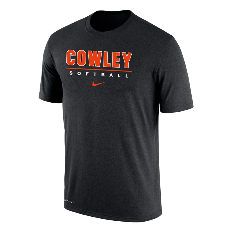 Dri-FIT cotton blend fabric with an ultra-soft sueded hand feel and moisture wicking properties. Crew neck silhouette with a rib neckband and interior neck taping for added comfort. Decorated with Cowley across the top and Softball underneath. Athletic fit. 57% Cotton | 43% Polyester