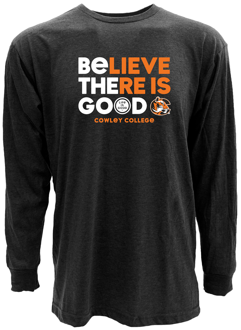 Life is Good® soft, comfy, and made to last tees. They are made for all-day comfort with a feels-like-you-had-it forever fit. Decorated with Believe there is Good (BE THE GOOD), our Tiger logo and Cowley College screen print. 52% cotton | 48% polyester