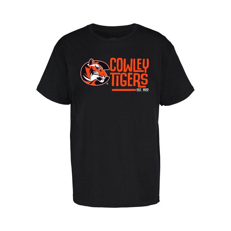 MV Sport Tiger Logo Cowley Tigers Est1922 Fun Script Youth Black T-shirt