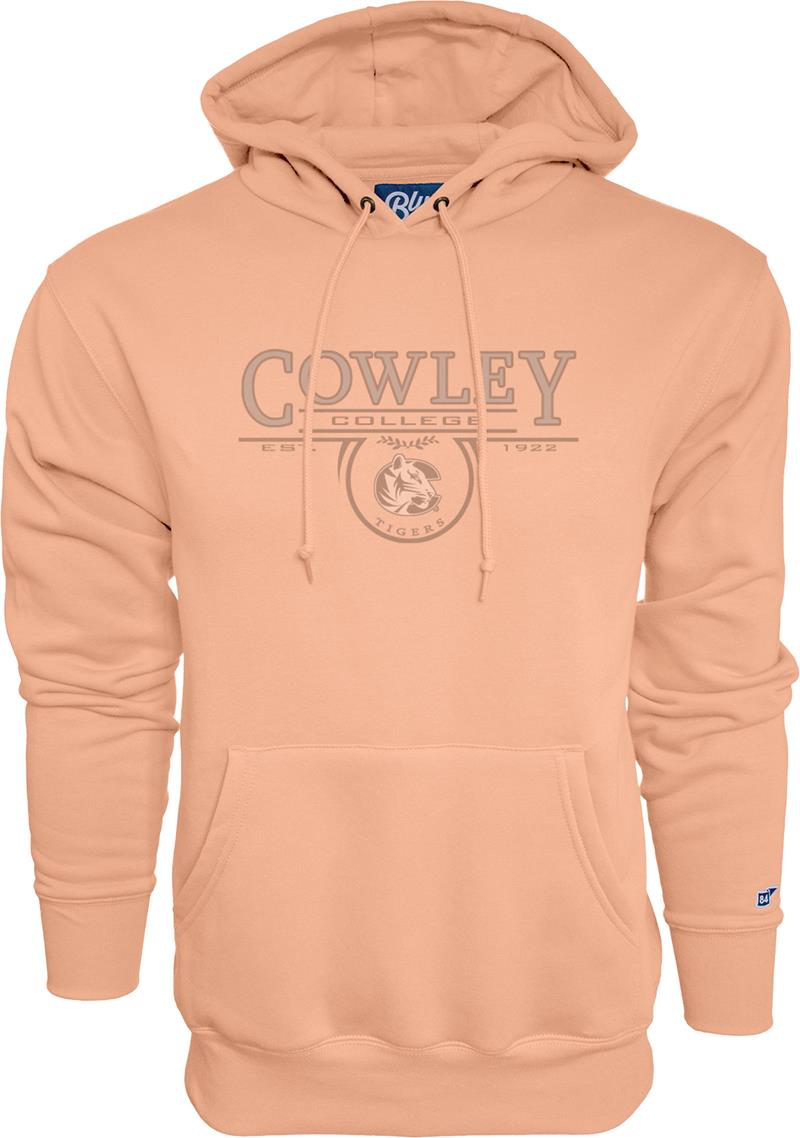 Blue84 Cowley College Est 1922 Tiger Logo & Tigers Inside Circle Leaf Design Hood