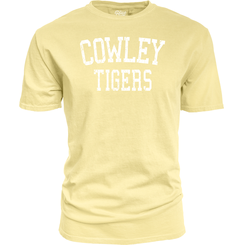 A staple silhouette in our super comfortable ringspun cotton, you will feel the difference. Decorated with Cowley Tigers in white distressed ink. It comes in all the pictured fashion colors for you to choose from. 100% Ringspun Cotton