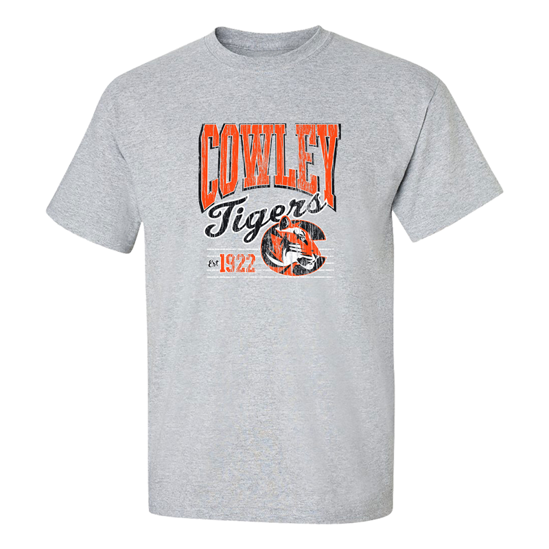 MV Sport Classic Fit Cowley Tigers Est1922 Tiger Logo Distressed Heather Grey T-shirt